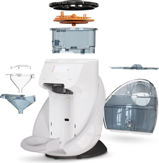 Díky programům pro různé druhy mléka, nastavení objemu 30–240 ml a paměti preferencí získáte konzistentní výsledek pokaždé. Tříúrovňové nastavení výšky lahve omezuje tvorbu bublinek, velká nádobka na prášek 400 g a nádrž na vodu 1,7 l zvládnou celodenní provoz. Elegantní design skvěle zapadne do každé kuchyně a přístroj poslouží i pro přesný ohřev vody na čaj.