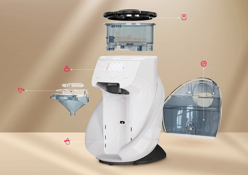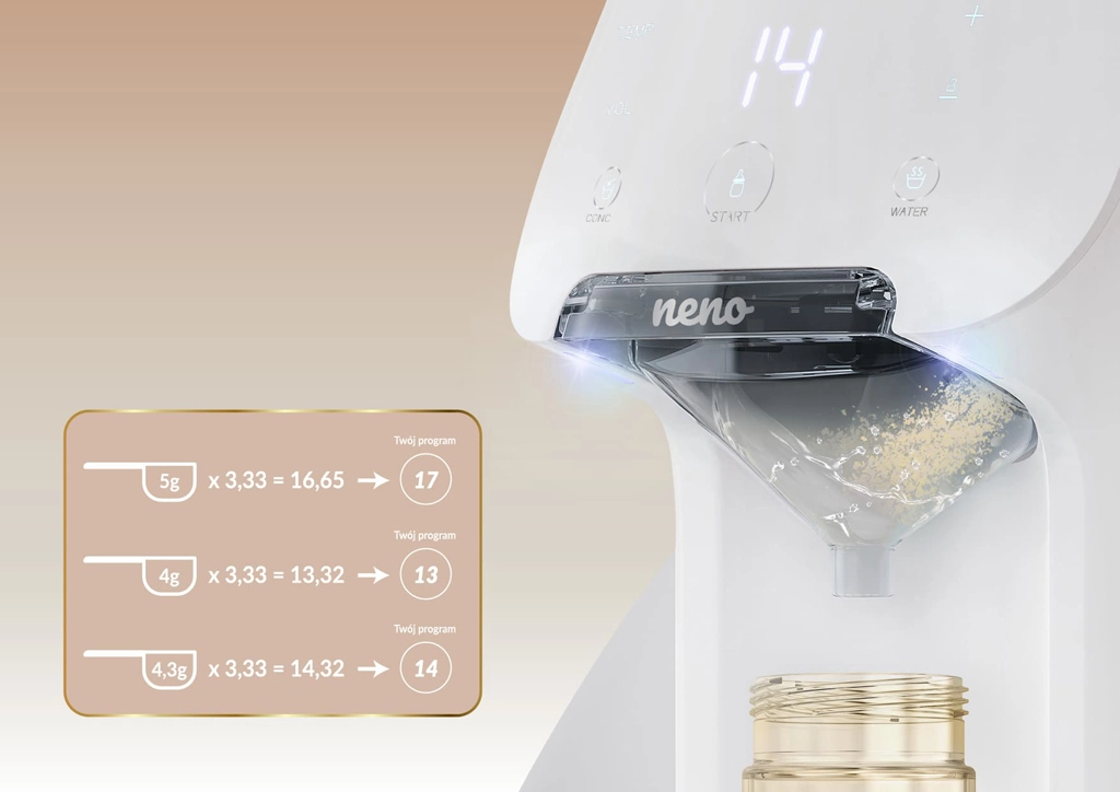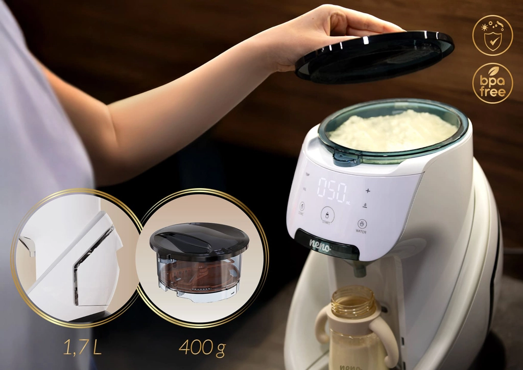 Neno Primavera kombinuje špičkovou technologii a jednoduchost ovládání, aby vám každý den šetřil čas a minimalizoval stres. Připravené mléko máte během okamžiku – stačí nasypat směs, nalít převařenou vodu a spustit. Přístroj sám ohřeje vodu na ideální teplotu, namíchá správnou konzistenci a upozorní, pokud něco chybí.