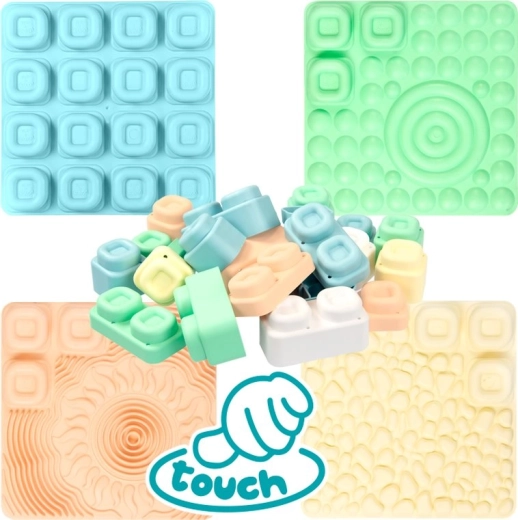 Sada MOCHTOYS Play & Squish přináší bezpečné a podnětné prostředí pro objevování textur, tvarů a barev. Každá podložka má odlišnou strukturu, která podporuje vnímání dotyku, zatímco měkké a pružné kostky jsou snadno uchopitelné i pro malé ruce a lákají ke stavění, třídění a volné hře.