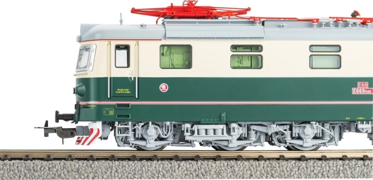 Tato šesti nápravová elektrická lokomotiva řady E 669.1 v ikonickém provedení ČSD věrně zachycuje robustní nákladní stroj, který po desetiletí dominoval těžké dopravě. Model od Piko zaujme jemnými detaily povrchů, realistickými podvozky, přesným potiskem a dvěma kovovými nůžkovými sběrači. Díky rozhraní NEM 658 PluX22 je připraven na snadnou instalaci zvuku.