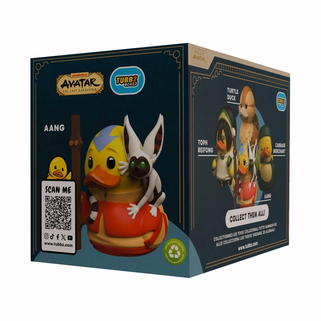 Kombinuje roztomilý vzhled klasické gumové kachničky s charakteristickými prvky Aanga – od barevného oděvu až po ikonickou modrou šipku. Je ideální jako dekorace, dárek pro fanoušky i součást větší sbírky Tubbz.