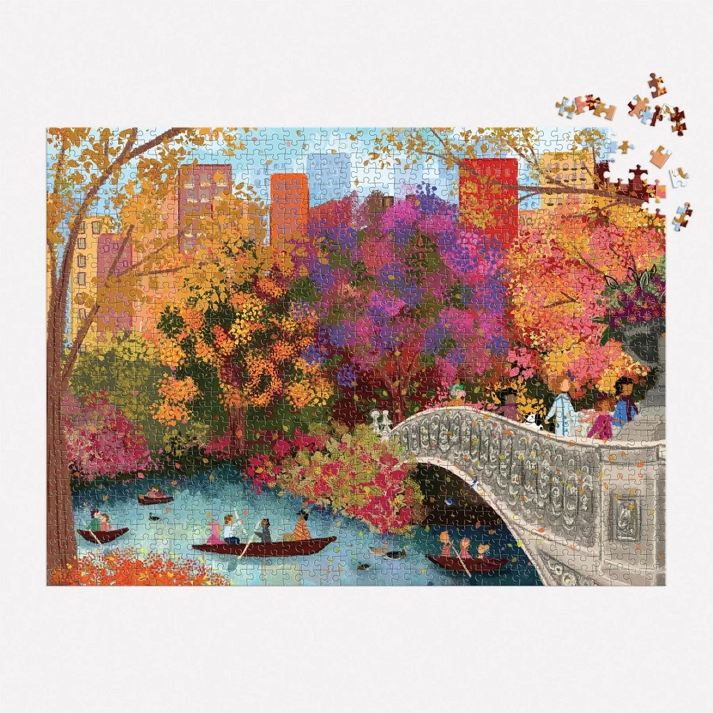 Elegantní ilustrace Joy Laforme zachycuje ikonický most Bow Bridge obklopený zářivými podzimními odstíny v srdci Central Parku. Scéna plná života – procházky po mostě, klidná hladina jezírka – přináší harmonickou a uklidňující atmosféru, která potěší milovníky umění i městských scenérií.