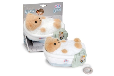 Hrající medvídek BABY born pro miminka je navržen tak, aby potěšil a uklidnil děti již od narození. Hebká plyš láká k mazlení, zatímco vyjímatelný hudební modul přehrává příjemnou, uklidňující melodii, která pomáhá miminku zklidnit se a snáze usnout.