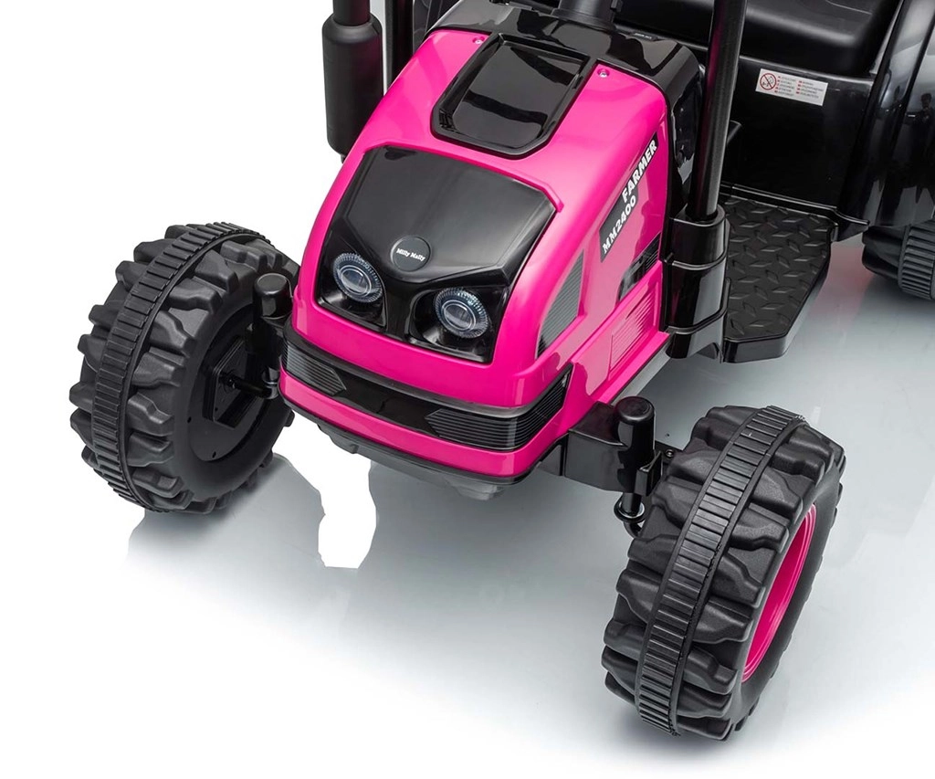 Dětský elektrický traktor s přívěsem MILLY MALLY Farmer v růžové barvě nabídne realistickou jízdu se světly LED, dvěma motory 2 × 35 W a baterií 12 V / 7 Ah. Díky kloubovému řízení, odpružení a bezpečnostnímu pásu je jízda plynulá a bezpečná. Bohatý audio panel s rádiem, MP3, USB a Bluetooth, stejně jako odnímatelný přívěs pro převážení hraček, zajistí hodiny zábavy doma i venku.