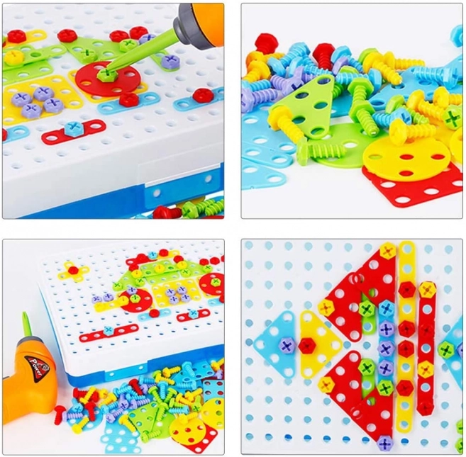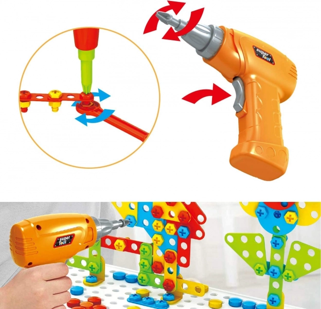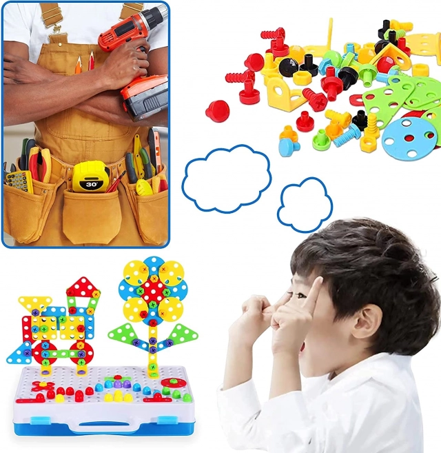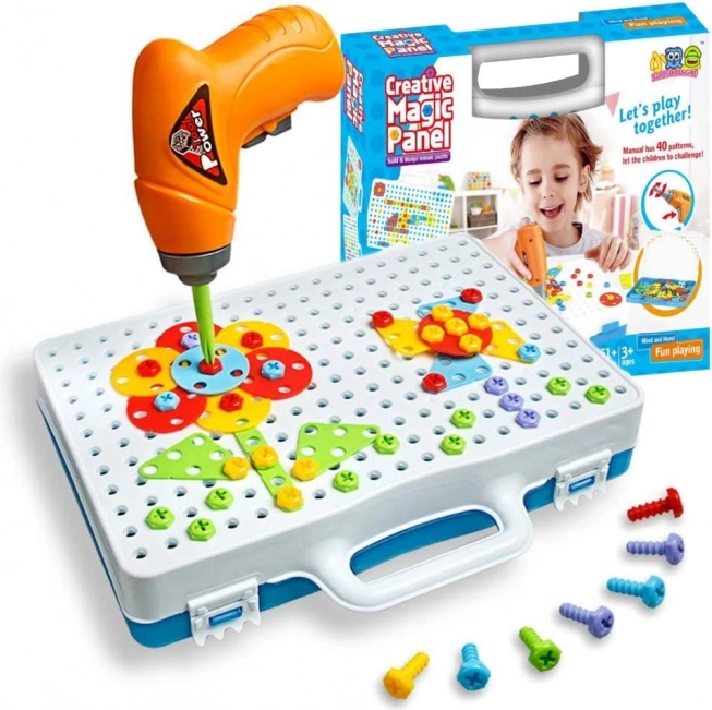 Hra se skládá z uspořádání různých tvarů a obrazců. Vybrané prvky se vrtačkou zašroubují do desky kufříku, na kterém jsou speciální otvory. Vrtačka je poháněna bateriemi, umožňuje zašroubovat i vyšroubovat. Živé a kontrastní barvy přitahují pozornost dítěte a zvyšují zájem o hračku.