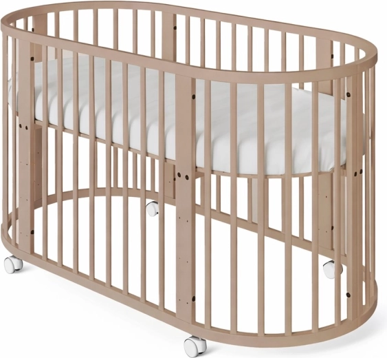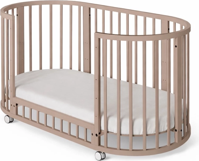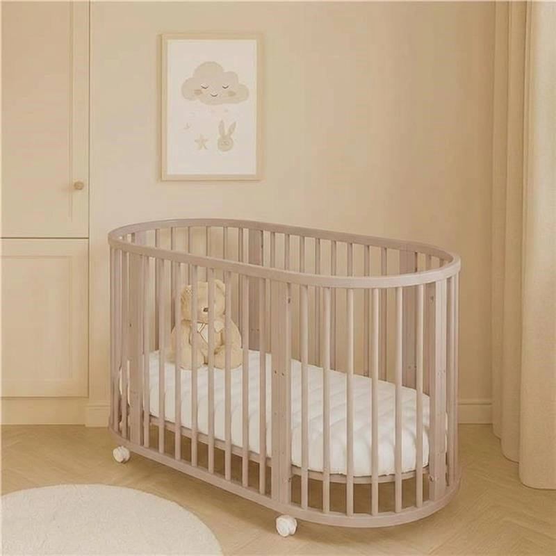 Oválná rostoucí postýlka 3v1 je navržena pro dlouhodobé používání a snadnou transformaci bez dalších dílů. Díky zaoblenému tvaru skvěle zapadne do každého interiéru, poskytne lepší přehled o miminku a eliminuje ostré rohy. Masivní dřevo a ekologická povrchová úprava splňující normu EN 71-3 zaručují bezpečí a odolnost. Součástí je třídílný matrac s pružnou pěnovou výplní a přizpůsobivým potahem pro všechny konfigurace.