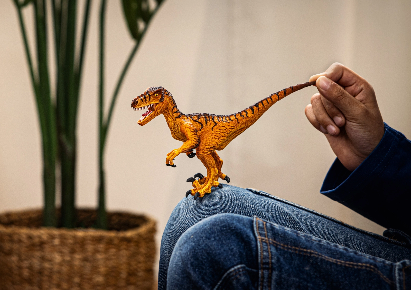 Detailní šupiny, pruhované zbarvení a výrazné drápy zaujmou na první pohled a obohatí každou sbírku dinosaurů.