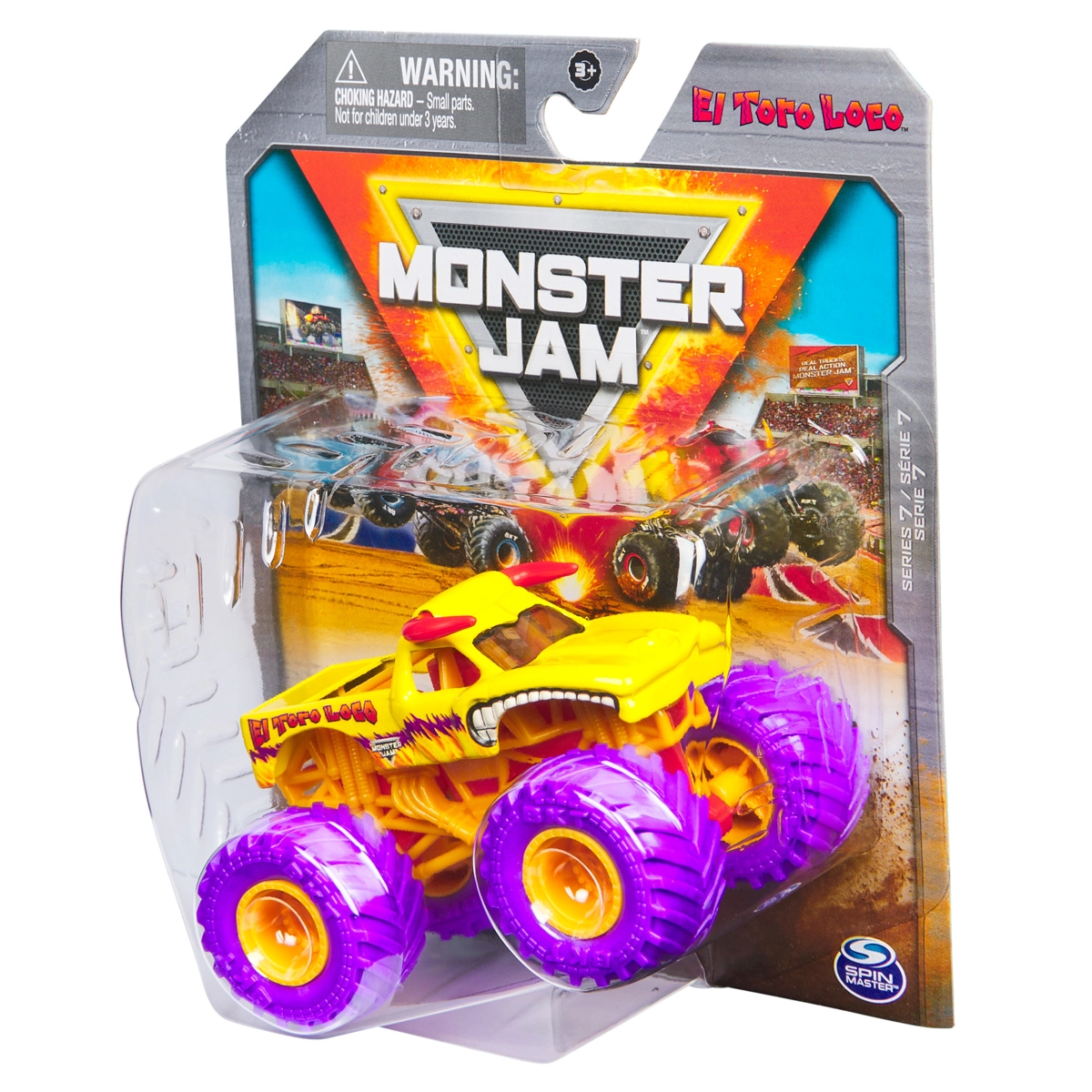 Výrazné zbarvení, rudé „rohy“ a masivní fialová kola dělají z El Toro Loco hvězdu každé arény. Skvělý kousek do sbírky i na kaskadérské triky.