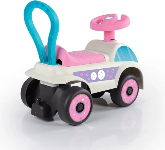 Roztomilé odrážedlo pro nejmenší pomáhá s prvními krůčky i samostatnou jízdou. Nabízí stabilní čtyřkolový podvozek, zadní madlo pro oporu, úložný prostor pod sedátkem a funkční klakson pro zábavnější hraní. Ideální pro rozvoj hrubé motoriky, rovnováhy a koordinace dětí od 12 do 36 měsíců.