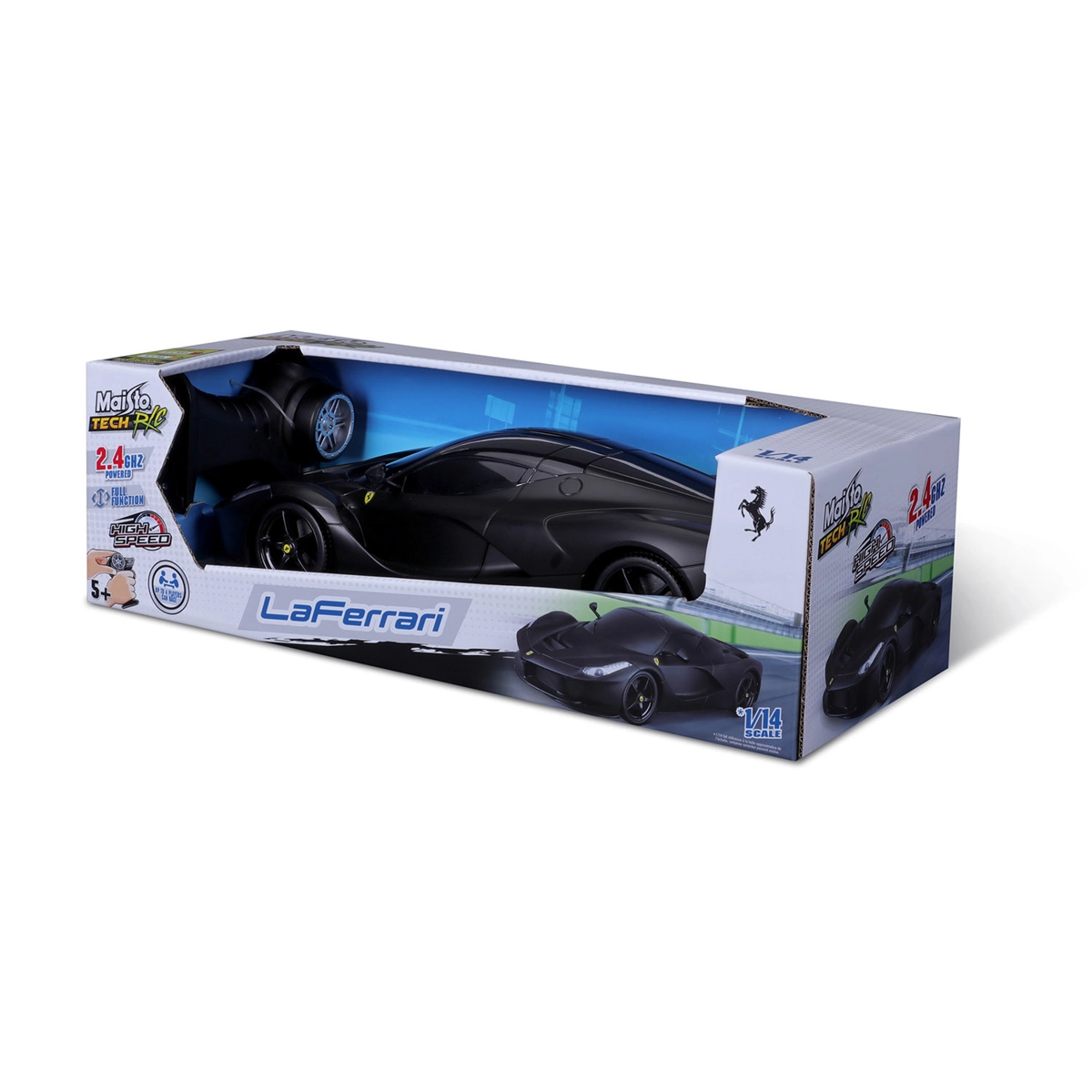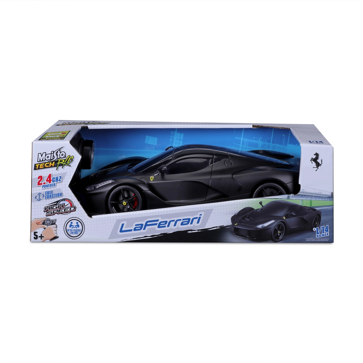 Stylový model MAISTO RC LaFerrari 1:14 v elegantní černé barvě přináší realistický zážitek z jízdy. Nabízí plně funkční ovládání, světlomety a zadní světla, pistolový ovladač s 2,4 GHz pro jízdu až čtyř modelů současně a dosah až 35 m. Ideální pro malé i velké fanoušky superaut od 5 let.