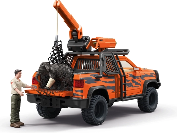 Toto dobrodružné záchranné vozidlo zvládne i náročný terén – zaparkujte u zvířete, vystřelte síť z děla na střeše a pomocí funkčního navijáku bezpečně přesuňte malého slona na ložnou plochu. Otevírací dveře, kapota i víko zavazadlového prostoru přidávají hře na autentičnosti, zatímco ranger Tom se pohyblivými pažemi a nohama provede ošetření pomocí přiloženého obvazu.