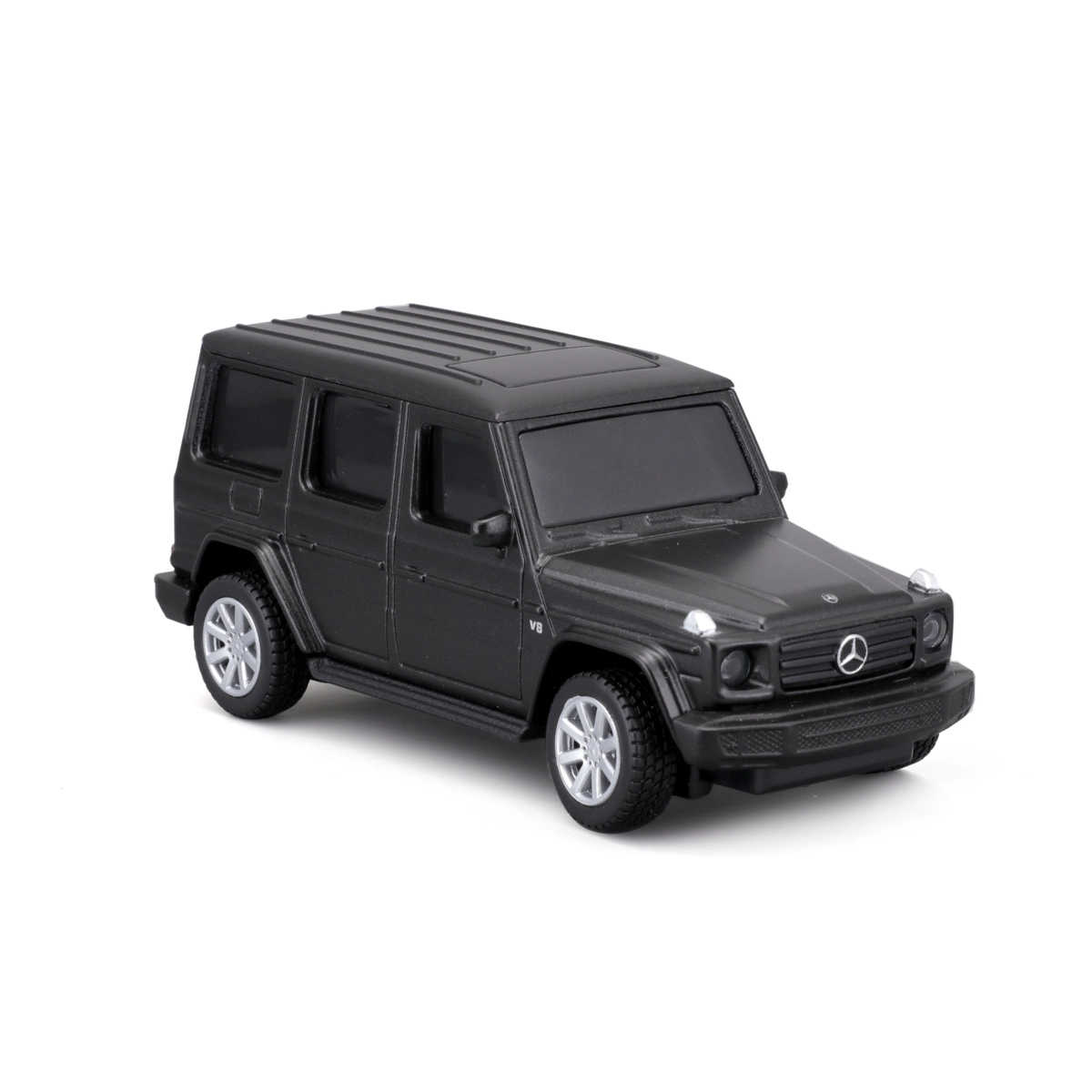 Detailní karoserie, stříbrná kola a výrazné linie legendárního SUV MERCEDES‑BENZ G‑CLASS dodávají modelu věrný vzhled vhodný pro hraní i sběratelské vystavení.