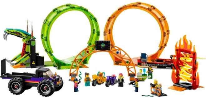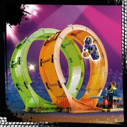 Stavebnice LEGO City Stuntz Kaskadérská dvojitá smyčka přináší dětem od 7 let nekonečné možnosti hraní. Skladba arény s ohnivou smyčkou, smyčkou s hadí tlamou a efektní ohnivou stěnou posouvá kaskadérské triky na novou úroveň. Motorky se setrvačníkem snadno naberou rychlost a vyrazí do akce, zatímco monster truck s rampou završí show velkolepým skokem.