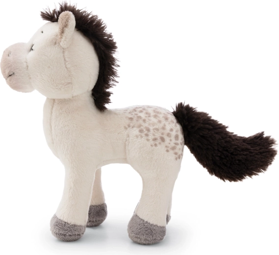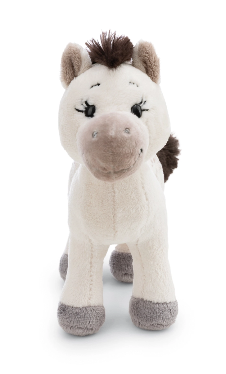 Poník Mony okouzlí svým elegantním bílým kožíškem, tmavě hnědou hřívou a ocasem a jemným skvrnitým vzorem na zádi. Stojící provedení a kvalitní šití zajišťují odolnost při každodenním hraní, zatímco hebký povrch láká k nekonečnému mazlení.