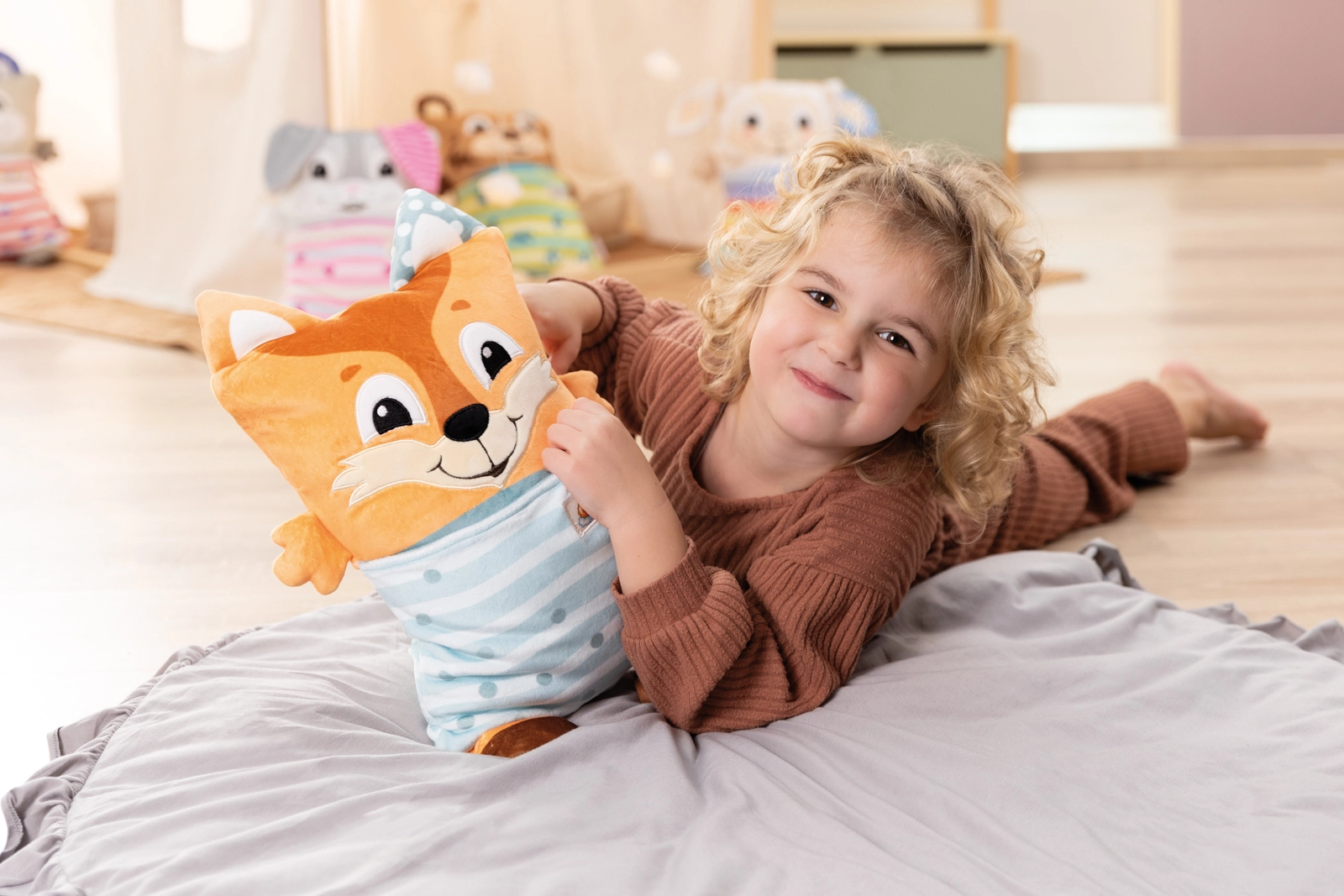 Objevte kouzlo lišky NICI Cosidoos – hebký mazlíček, který se jediným převrácením změní podle denní doby. Přes den podporuje kreativní hru a fantazii, večer se promění v něžného společníka pro klidné usínání. Díky kvalitnímu, super měkkému plyši je radost ji mazlit, objímat i používat jako polštářek.
