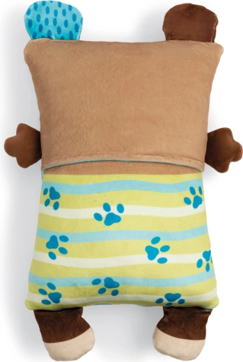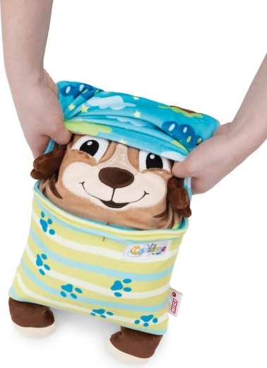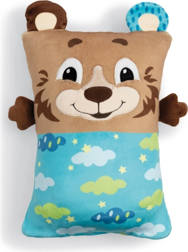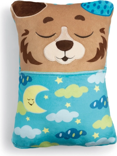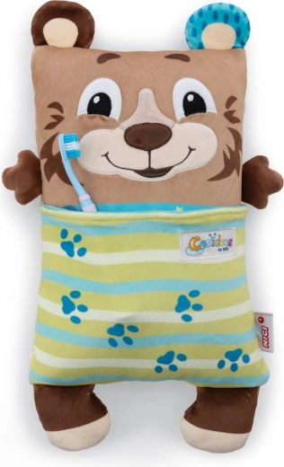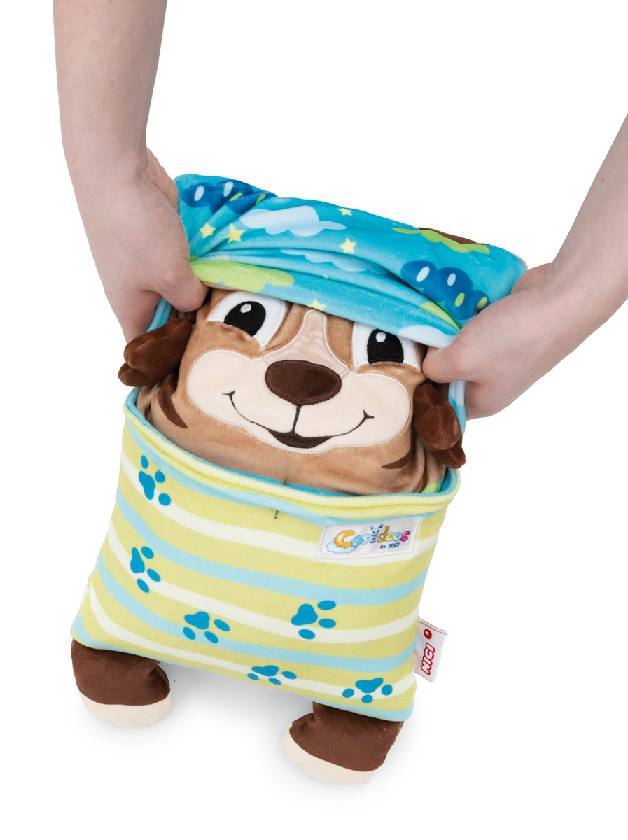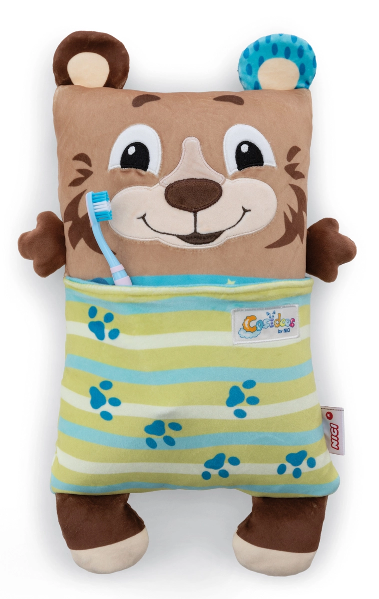 Roztomilý plyšový medvídek NICI Cosidoos je oboustranný mazlíček a polštářek, který se jedním pohybem promění z veselého denního společníka na uklidňující kamaráda na spaní. Super měkký plyš, praktické kapsy na drobnosti a snadné převrácení podporují hru, fantazii i klidné usínání. Ideální pro děti od 12 měsíců.