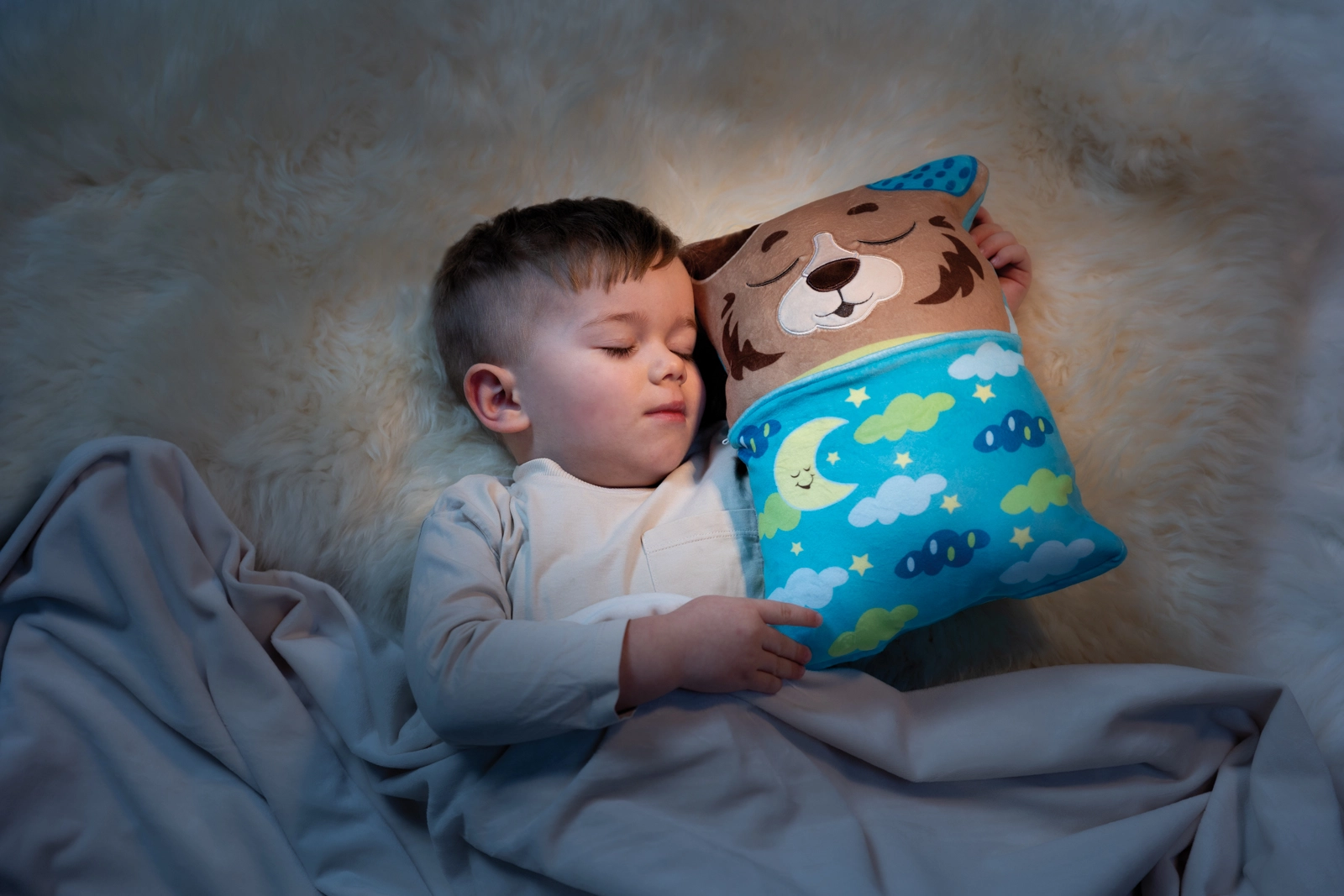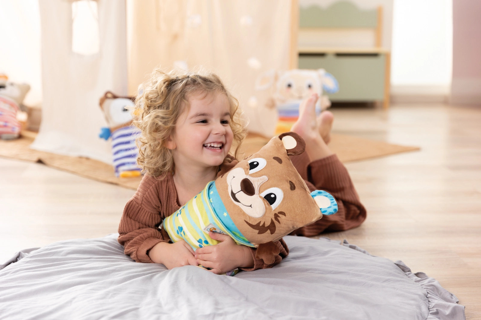- 2 v 1: hračka i polštářek – podpora fantazie přes den, jemné uklidnění na noc.