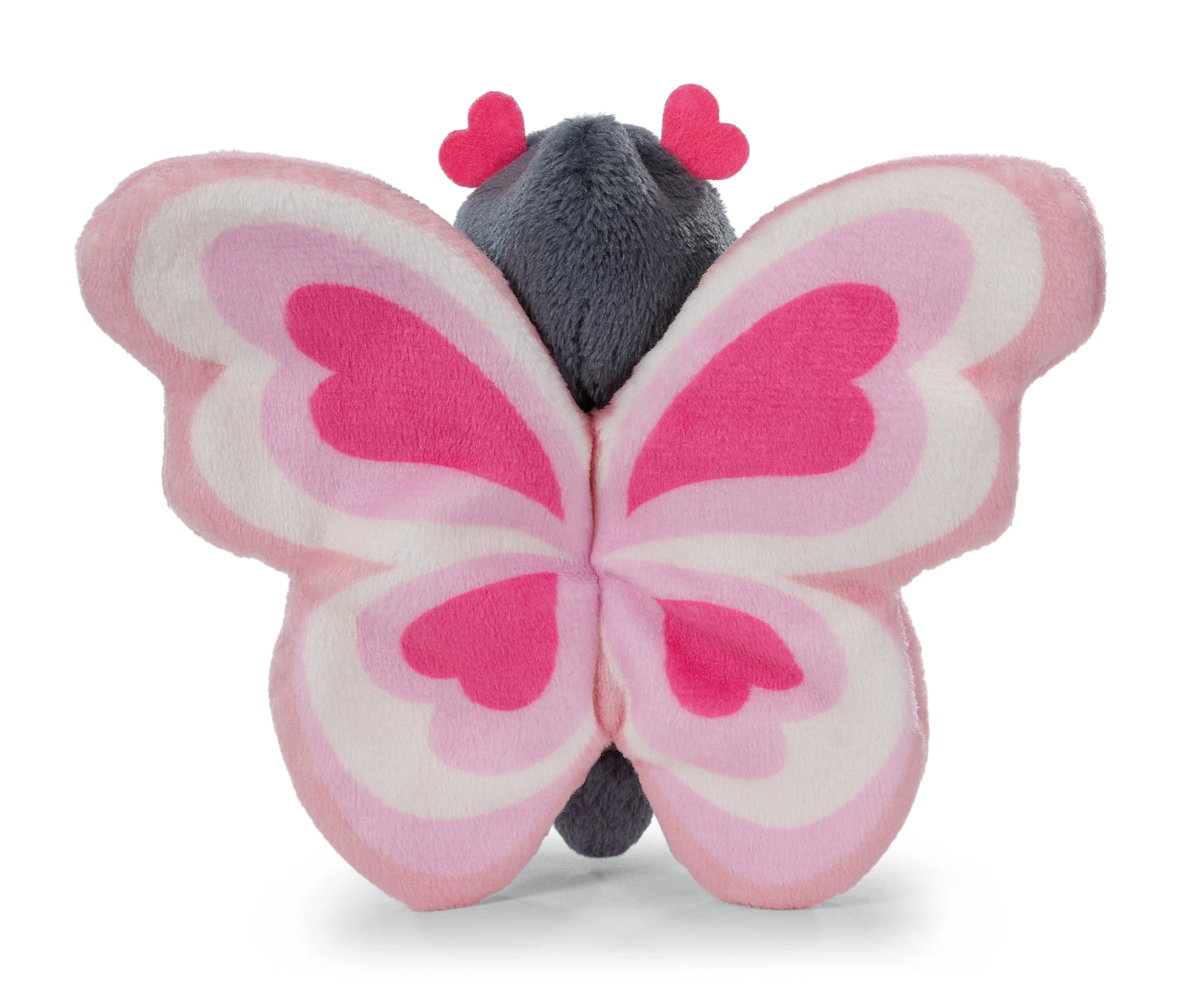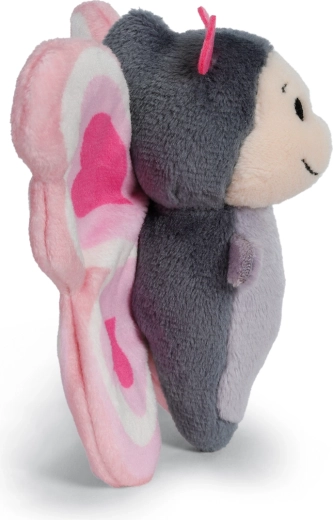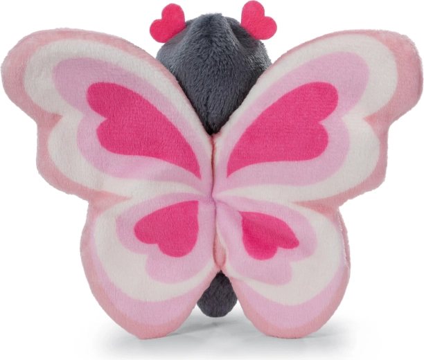 Plyšový motýlek NICI Love z kolekce Love Classic potěší malé i velké. Kombinuje hebký šedofialový kožíšek, srdíčková tykadla a nápadná růžovo-bílá křídla s motivem srdcí. Díky vyšívaným očím a detailům je vhodný i pro nejmenší děti od narození.