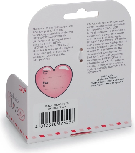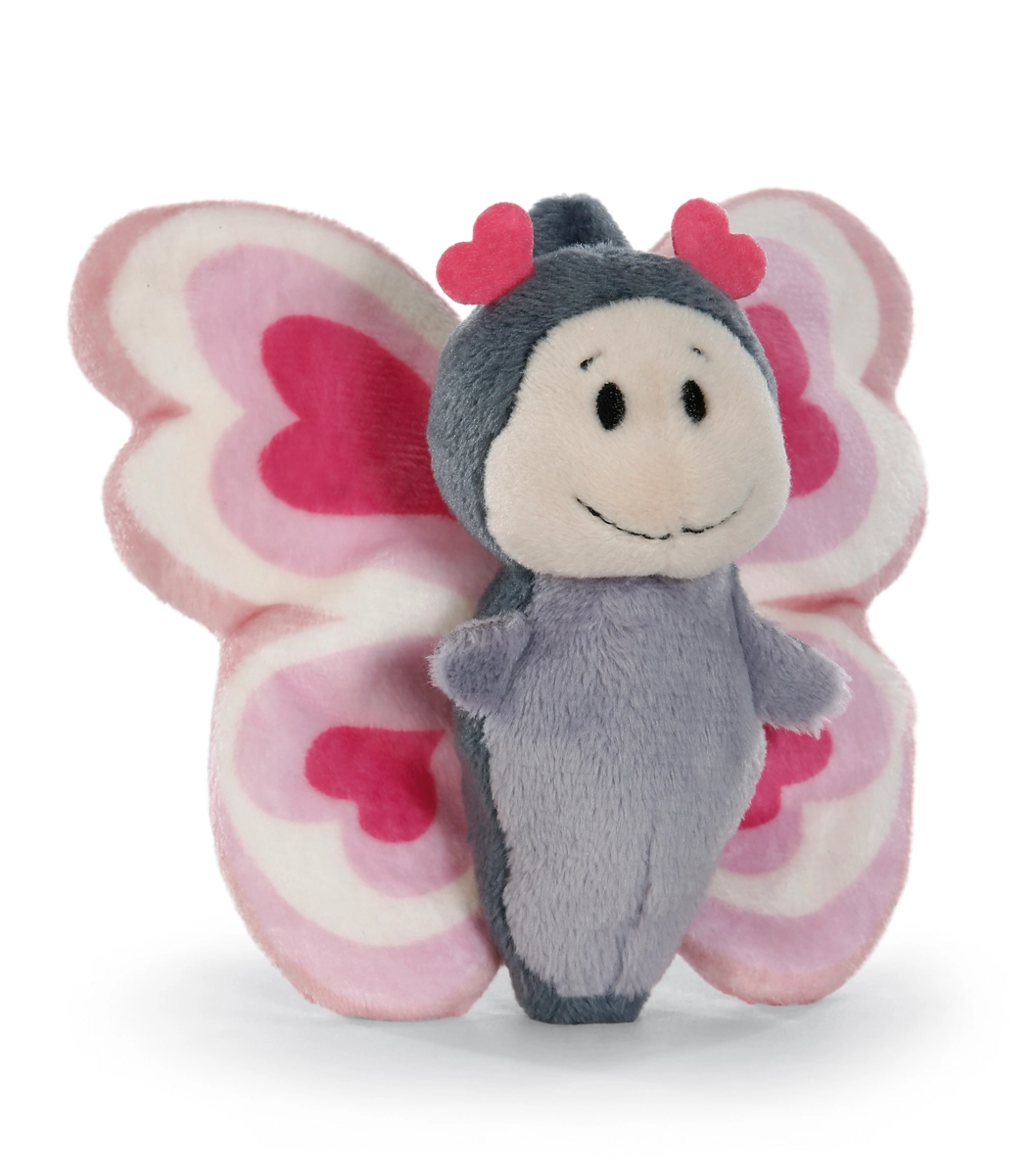 Roztomilý plyšový motýlek NICI Love o velikosti 10 cm okouzlí měkoučkým hebkým materiálem, křídly s motivem srdíček a bezpečnými vyšívanými detaily. Dodává se v dárkové krabičce, takže je ideální jako dárek k Valentýnu, narozeninám či jen tak pro radost. Vyrobeno v rámci iniciativy NICI GREEN s využitím recyklovaných materiálů (RPET).