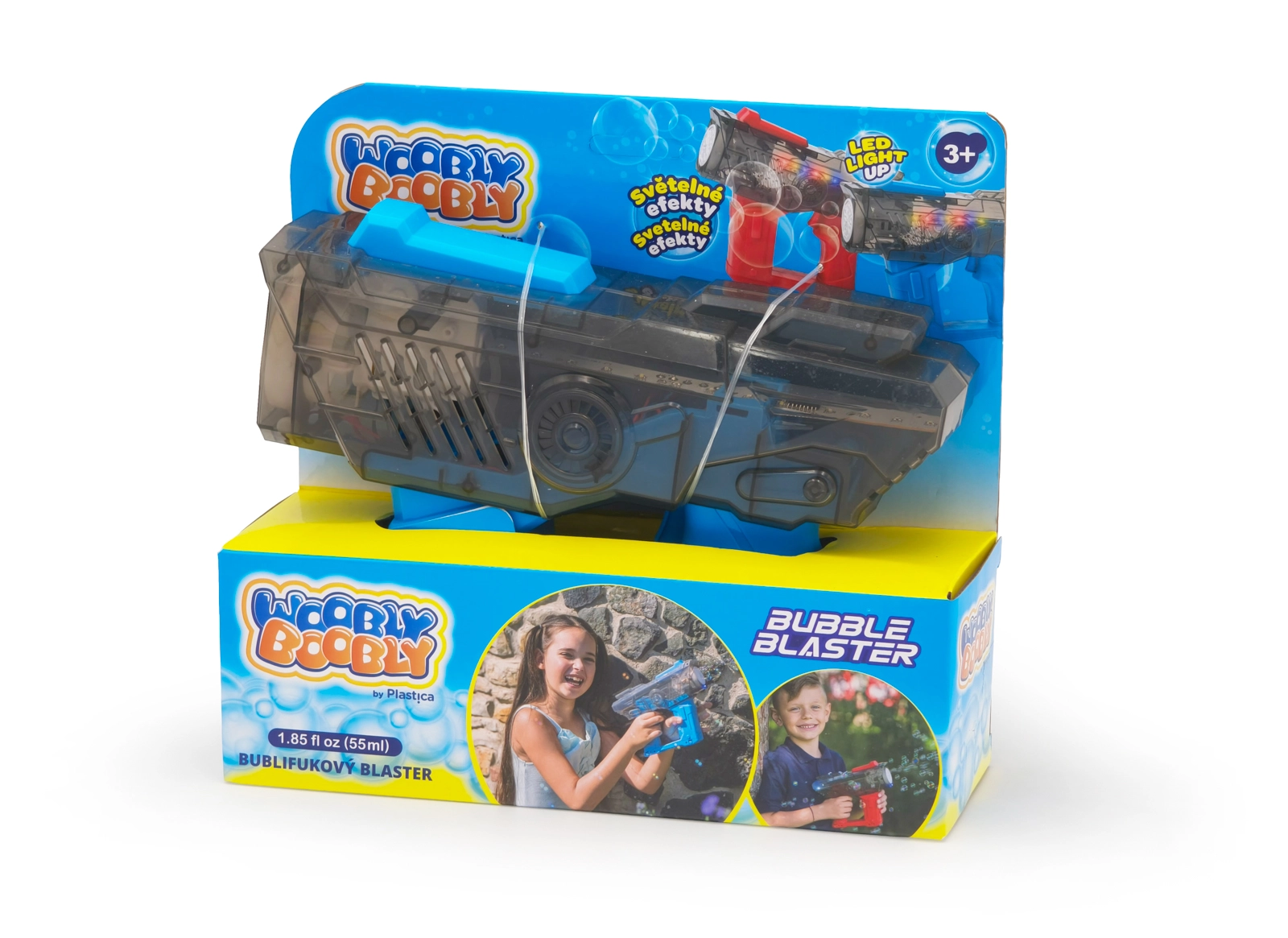 Bublifukový blaster WOOBLY BOOBLY promění každé odpoledne v barevnou podívanou. Díky kombinaci výkonného systému tvorby bublinek a barevných LED světel vykouzlí doslova kouzelnou atmosféru – děti budou nadšené z proudů třpytivých bublinek i ze světelné show.