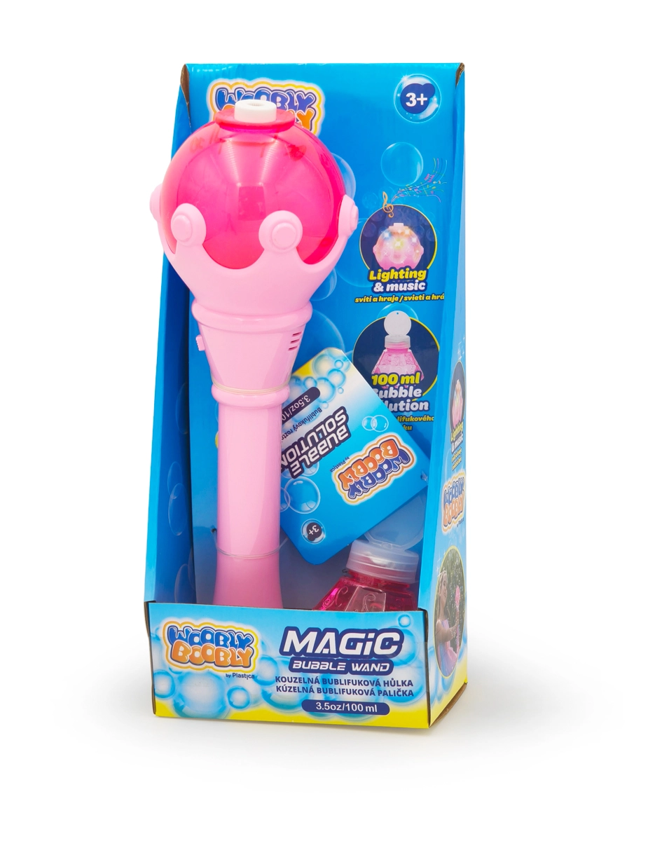 Vezměte do ruky vlastní kouzlo – hůlka WOOBLY BOOBLY po zapnutí okamžitě rozsvítí průzračné barvy, spustí příjemnou melodii a vyčaruje spoustu třpytivých bublinek. Díky snadnému ovládání a kompaktním rozměrům je skvělá na zahradu, narozeninové oslavy i večerní procházky.
