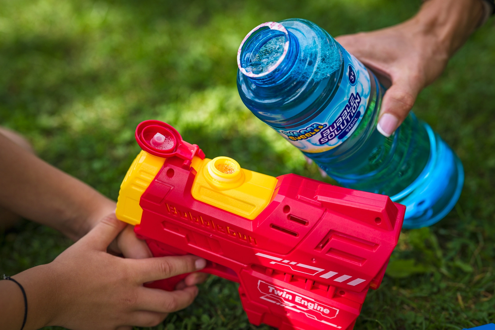 Skvěle doplní bublinkové pistole a další hračky na bubliny – rychlé a čisté dolévání bez zbytečného plýtvání.