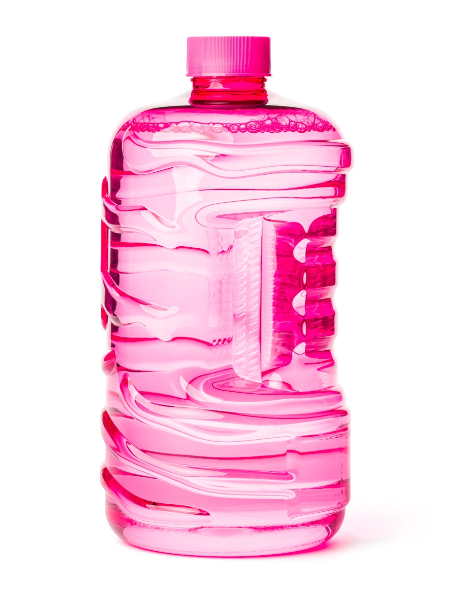 Ergonomické tvarování a široké hrdlo usnadní přelévání do bublifuků. Průsvitné tělo ukazuje zbývající množství roztoku.