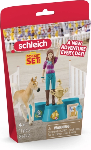 Udělejte dětem radost hrací sadou Schleich z kolekce POCKET SET, která přináší radost z vítězství přímo do dětského pokoje. Lisa vystoupá na stupně vítězů, hříbě získá modrou stuhu a společně oslaví první turnaj. Kvalitní provedení figurek Schleich podporuje realistickou hru a rozvoj fantazie.