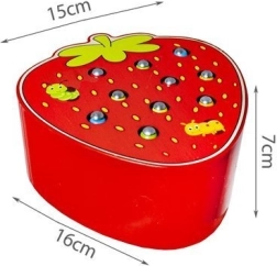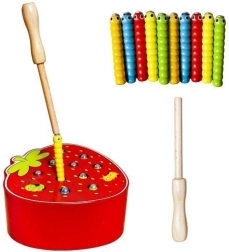 - Kompletní sada: dřevěná jahoda, magnetická tyčka a 10 červíků/gusenic