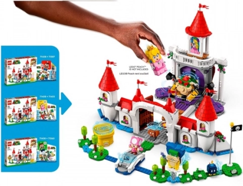 Vstupte do království PRINCESS PEACH s bohatě propracovaným modelem zámku, který rozšíří vaše kurzy LEGO Super Mario. Čeká na vás trůnní sál s otáčecí stěnou, za níž se skrývá Bowser, vitráž s Peach, tajný obraz se značkou akce i dort s Goombou. Nechybí speciální hradní roura, časový blok, lávový most a miska s fialovým ovocem.
