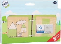 Dřevěná knížka LOTTA je navržená speciálně pro batolata od 12 měsíců. Pomáhá dětem hravou formou poznávat základní tvary a rozvíjet zrakové i hmatové vnímání. Odolné dřevěné stránky s pevnou kroužkovou vazbou zvládnou každodenní používání a snadno se udržují v čistotě.