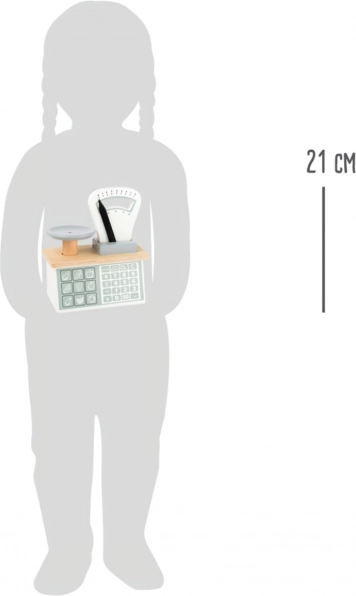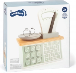 Dřevěná váha Small Foot věrně napodobuje skutečnou kuchyňskou či tržnicovou váhu. Pružinový mechanismus s pohyblivým ukazatelem a pevně spojeným talířkem umožňuje dětem prožívat autentickou hru na obchod, při které přirozeně rozvíjejí komunikaci, logiku a základní matematiku.