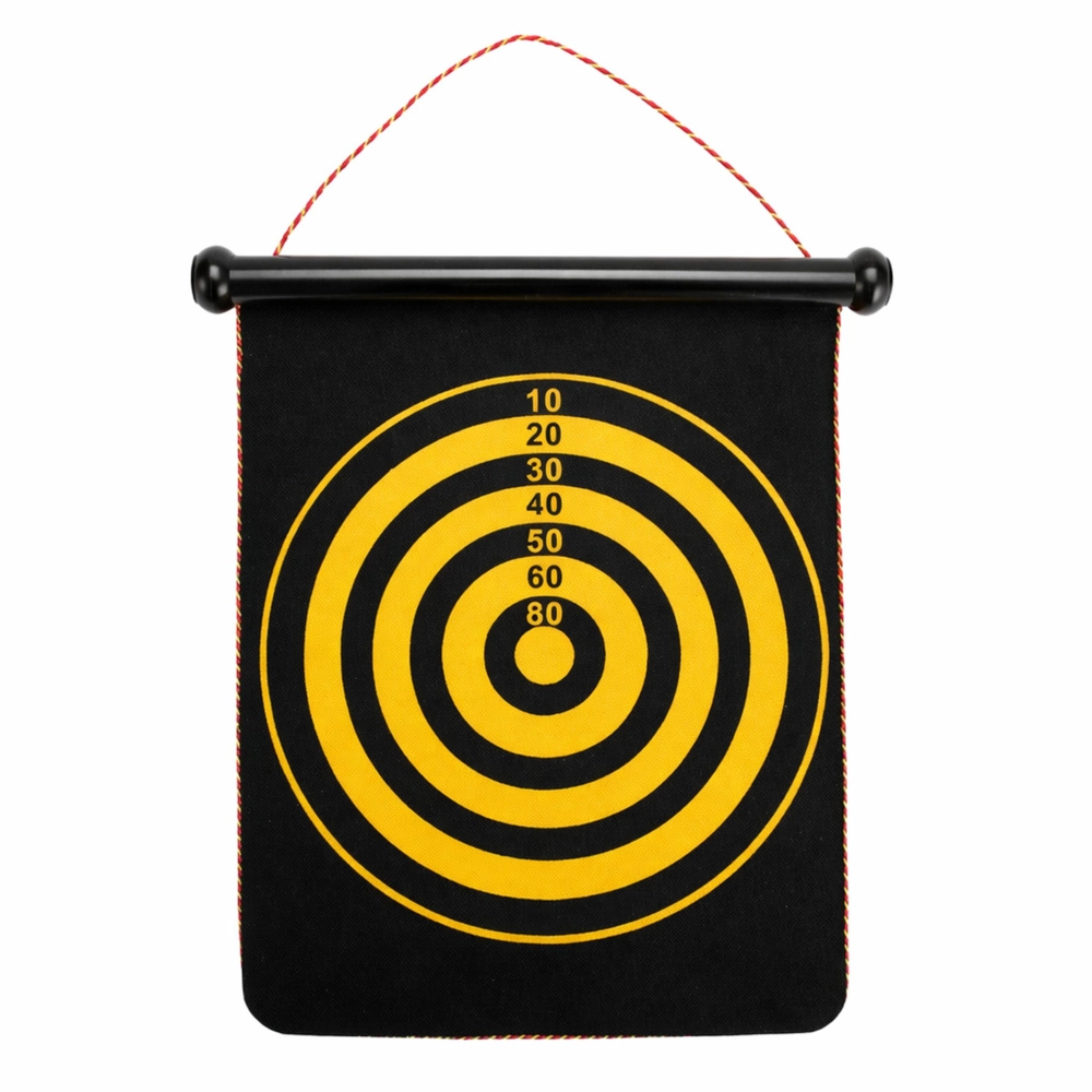 Ideální pro začátečníky i pokročilé: jedna strana nabízí standardní bodovaný terč, druhá cílové kruhy pro cílení. Barevné rozlišení šipek (červené a žluté) umožní férové souboje ve dvojicích či týmech. Magnety pevně drží na ploše, ale nepoškozují nábytek.