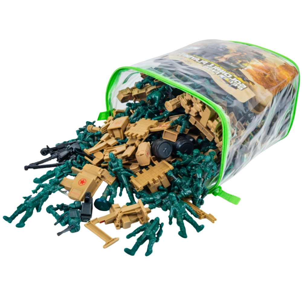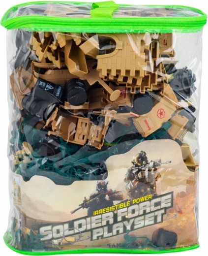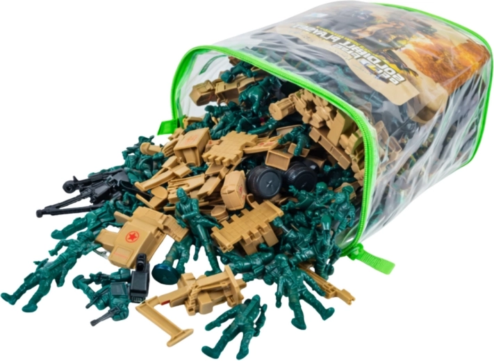 Rozsáhlý vojenský set pro děti přináší až 400 dílků pro nekonečné scénáře bitev, misí a obrany základen. Najdete v něm vojáčky, vozidla, děla, bariéry a další military doplňky. Součástí je průhledná taška na zip pro snadné uložení a přenášení. Odolné plastové figurky podporují kreativní hru, rozvíjejí představivost a jemnou motoriku – ideální pro samostatnou i týmovou zábavu doma i venku.