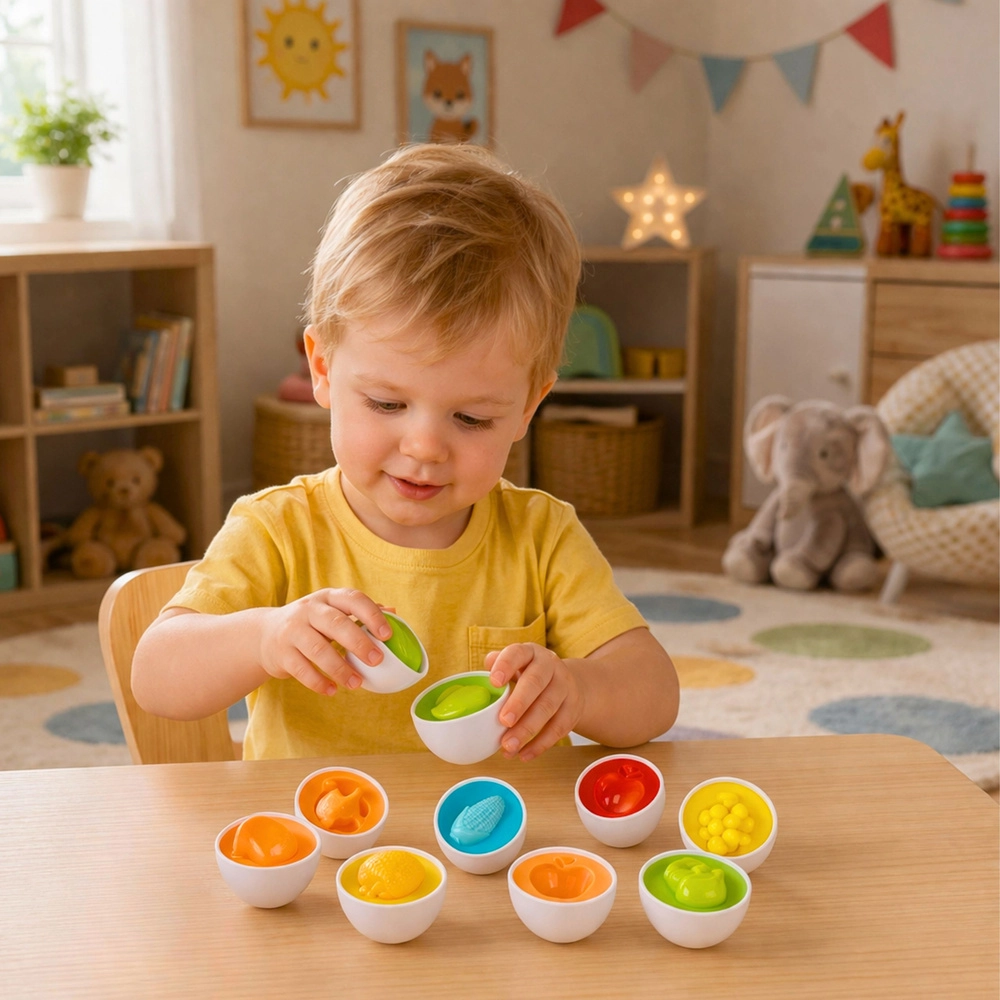 - Motorika a koordinace: spojování polovin vajíček trénuje úchop a přesnost.