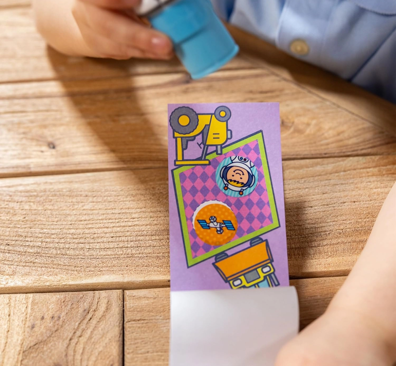 Bohatá zásoba samolepek s motivy zvířat, dopravních prostředků a symbolů podněcuje fantazii a zábavné učení.