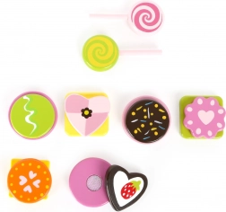 Objevte kouzlo sladkého hraní s pestrou sadou dřevěných pochoutek SMALL FOOT. Lízátka, sušenky a pralinky jsou vyrobeny ze 100% certifikovaného FSC dřeva a díky pevným suchým zipům je děti mohou znovu a znovu rozdělovat a spojovat. Realistické doplňky promění každou dětskou kuchyňku v kreativní cukrárnu.