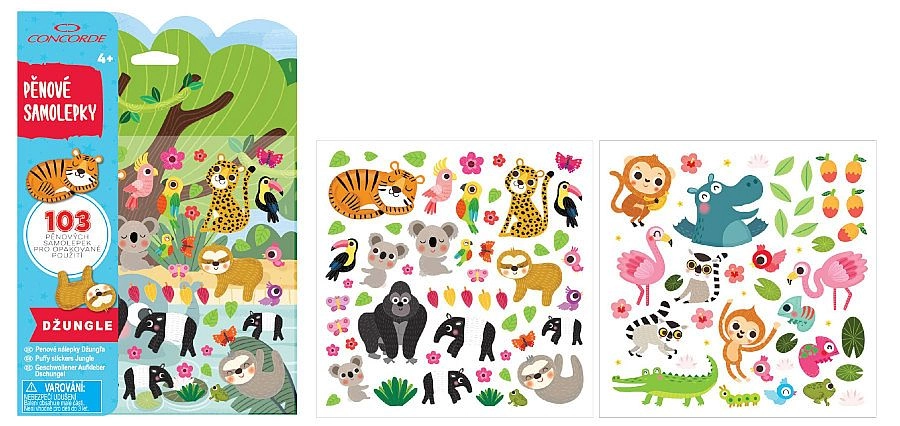 Vytvořte si vlastní divoký svět s motivy džungle! Tato sada pěnových samolepek CONCORDE nabízí snadné a čisté hraní bez nepořádku – samolepky přilnou k jakékoli hladké ploše bez použití lepidla a lze je libovolně přesouvat. Ideální pro domácí tvoření, cestování i klidné odpolední aktivity.