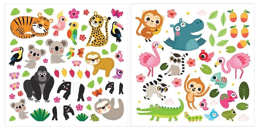 Díky měkkému pěnovému materiálu jsou samolepky příjemné na dotek a perfektně padnou do dětských rukou. Děti při manipulaci trénují koordinaci oko–ruka, rozvíjí jemnou motoriku a učí se poznávat zvířata a prostředí džungle hravou formou.