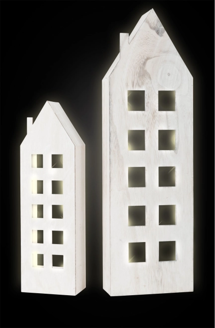 Tyto dva dekorativní domečky vynikají svým jednoduchým stylem, který se hodí do jakéhokoliv interiéru. Díky bateriovému LED osvětlení se stanou výrazným prvkem výzdoby: