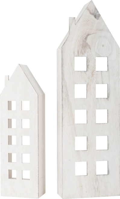 Malý domeček má rozměry 10x6x33 cm a větší domeček měří 14x6x47 cm. Dostanete tak výherní dekoraci vhodnou do každé místnosti.