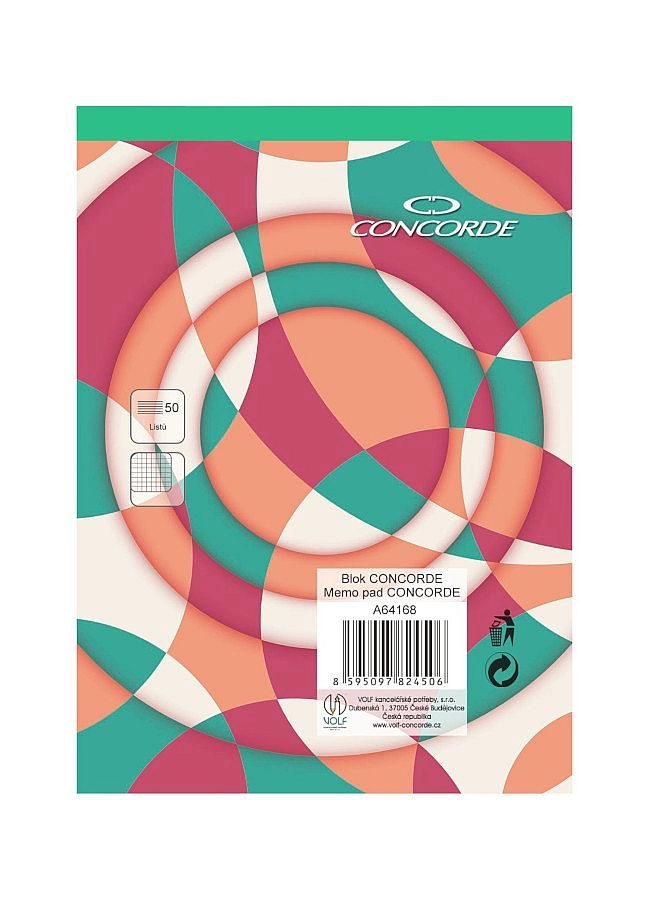Hledáte kompaktní blok do kapsy nebo tašky pro rychlé poznámky, náčrty a výpočty? Blok CONCORDE ve formátu A6 se čtverečkovaným rastrem je ideální volbou do školy, kanceláře i na cesty. Díky lepené vazbě se listy snadno odtrhávají a bílý bezdřevý papír zaručuje dobrou čitelnost.