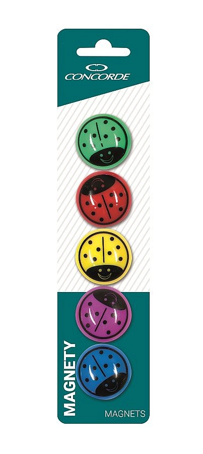 Dodejte svým dokumentům a vzkazům hravý vzhled s magnety ve tvaru roztomilých berušek. Větší průměr 35 mm zajišťuje pohodlnou manipulaci a jisté přichycení na kovových površích, jako jsou tabule, lednice či magnetické lišty.