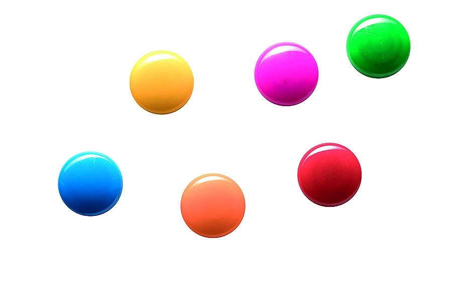 Zaoblené a lesklé tlačítkové provedení je šetrné k povrchům a pohodlné do ruky. Magnety jsou dobře viditelné i na dálku.