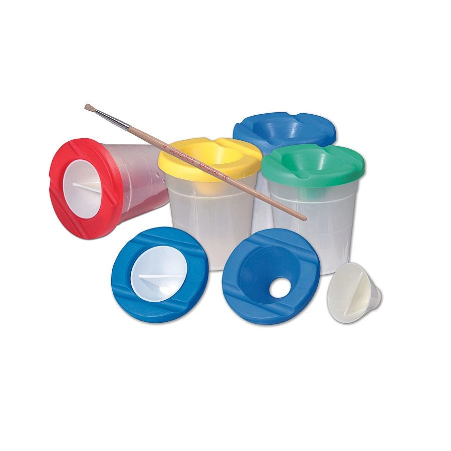Praktický kalíšek na vodu CONCORDE o výšce 9 cm je ideální pomocník pro malování a výtvarné práce. Díky chytrému víčku s rys-kou proti vylití voda při převrhnutí nevyteče. Nabízí dva odkládací žlábky na štětce, je vyroben z odolného a pružného materiálu a dodává se ve čtyřech barevných variantách.