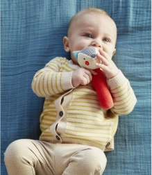 Chrastítko je vyrobeno z organické GOTS certifikované bavlny a barveno barvami na rostlinné bázi, takže je šetrné k dětské pokožce i k přírodě. Skvělé pro každodenní hraní i jako zábava na cestách.