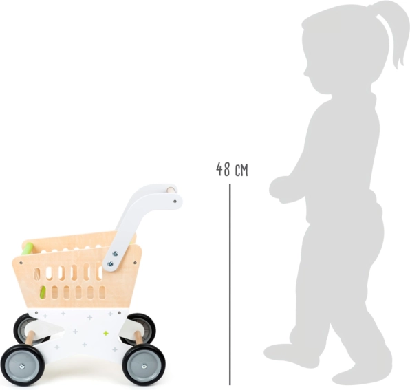 Dopřejte dětem autentický zážitek z nakupování. Dětský dřevěný nákupní vozík SMALL FOOT Trend kombinuje elegantní design, stabilitu a bezpečný provoz díky pryžovým kolečkům, která zajišťují tichý a kultivovaný chod na různých površích. Prostorný košík snadno pojme hračky, plyšáky i doplňky do dětského obchodu.