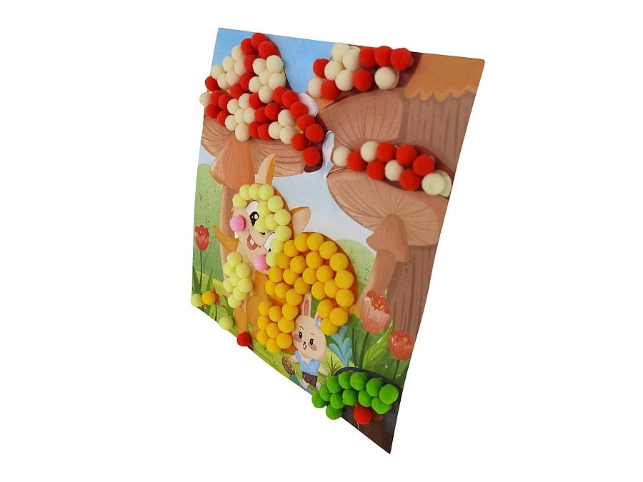 Objevte kreativní radost z tvoření s pompony. Děti podle předlohy přikládají měkké barevné kuličky na vyznačená lepivá místa a během chvilky vzniknou působivé 3D obrázky zvířátek. Ideální aktivita pro deštivé odpoledne, tvořivý kroužek i společné tvoření s rodiči.