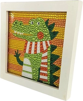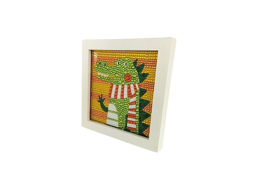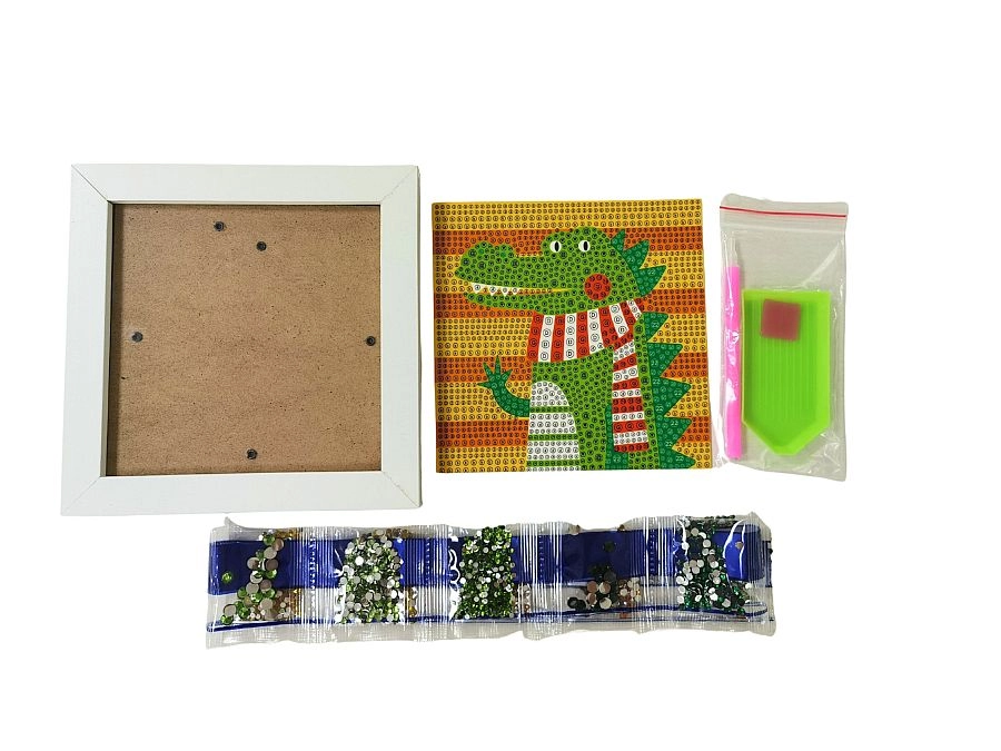Objevte zábavné diamantové malování s motivem krokodýla, které rozvíjí jemnou motoriku, trpělivost a kreativitu. Sada obsahuje vše potřebné pro snadné tvoření a vytvoření zářící dekorace v rámečku.