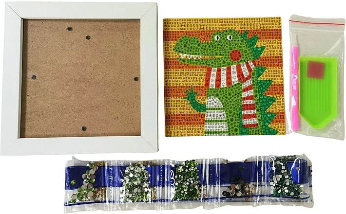 Tato kreativní sada diamantového tvoření s motivem krokodýla potěší děti i dospělé. Díky barevné předloze a jednoduché aplikaci diamantů pomocí pera a silikonového gelu zvládne krásný třpytivý obrázek opravdu každý. Hotové dílo můžete hrdě vystavit do přiloženého bílého rámečku.